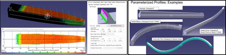 Lucidshape CAA V5(簡稱為LSCAA V5)是一套將LucidShape 強大功能整合於 CATIA V5/V6 環境下的車燈光學設計模擬分析軟體。Base及Design 模組方便使用者可在CATIA 下同時進行光學及機構件的設計模擬及分析。透過參數化設置方式(如:齒花的α及β角度、尺寸、導角曲率、拔模角、光導樣式…等),軟體便可自動產生出所需的光導物件;再經由軟體優化參數的設定(如:最佳化角度光分佈、最佳均勻度、特定出光角度…等) ,對所創建的光導物件進行全自動化的優化程序,使光導元件的出光能符合 在指定方向或角度的光強分佈要求。